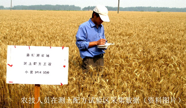 潘村湖农场从2006年开始启动测土配方工程,按照土壤“缺什么、补什么,缺多少、补多少”的施肥原则,在肥料使用上氮磷钾肥合理搭配,微量元素适量补充,有机质含量努力提升。全场3.23万亩小麦2007至2009年3年间共减少肥料用量近970吨,节约成本206万元。
