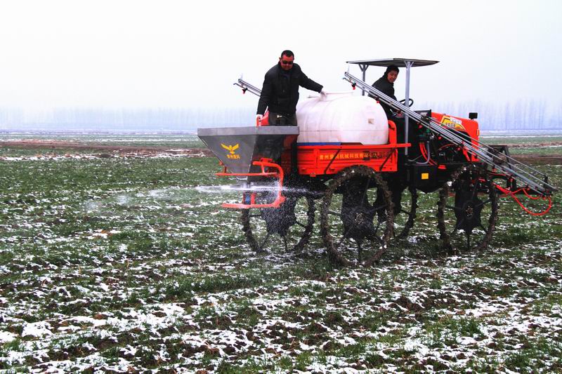 28,安徽农垦龙亢农场一家庭农场职工正在冒雪用高地隙植保机给小麦追施促壮肥。目前,该农场抢抓农时,组织开展小麦开春田管。截至当晚,全场3.5万亩小麦全部追施了促壮肥,达到了促壮、促分蘖的作用,为小麦丰产打下坚实基础。(安徽日报201721002版,李峰摄)